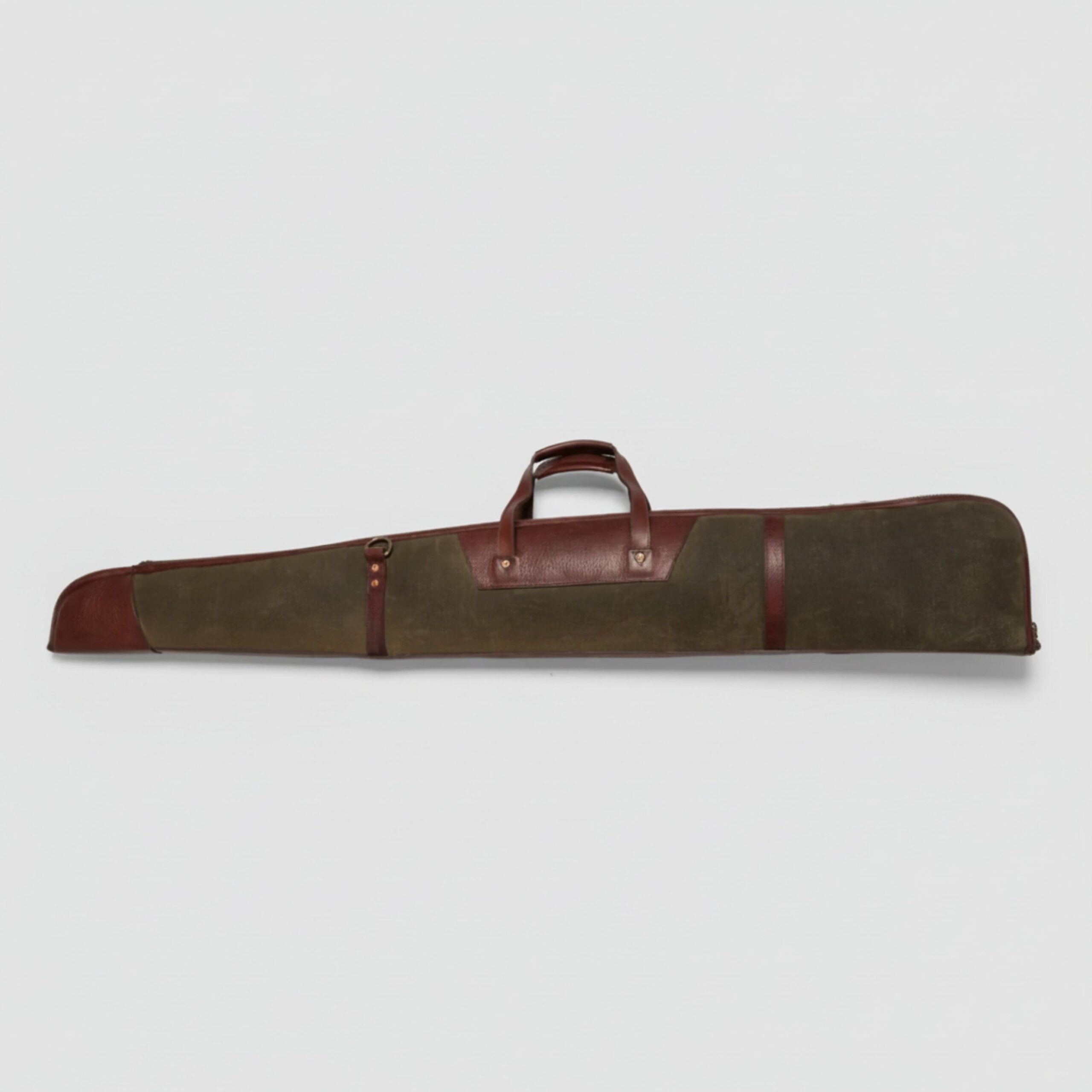 The Brass Zippers Waxed Canvas Shotgun Case offers durable protection for your shotgun with a spacious main compartment that fits up to 50″ guns. Crafted from water-resistant, high-quality waxed canvas, it features reinforced copper rivets, a comfortable ergonomic strap, and a soft shearling interior. The case also includes leather handles and an exterior zipper pocket for added convenience. Perfect for secure and stylish transport.
