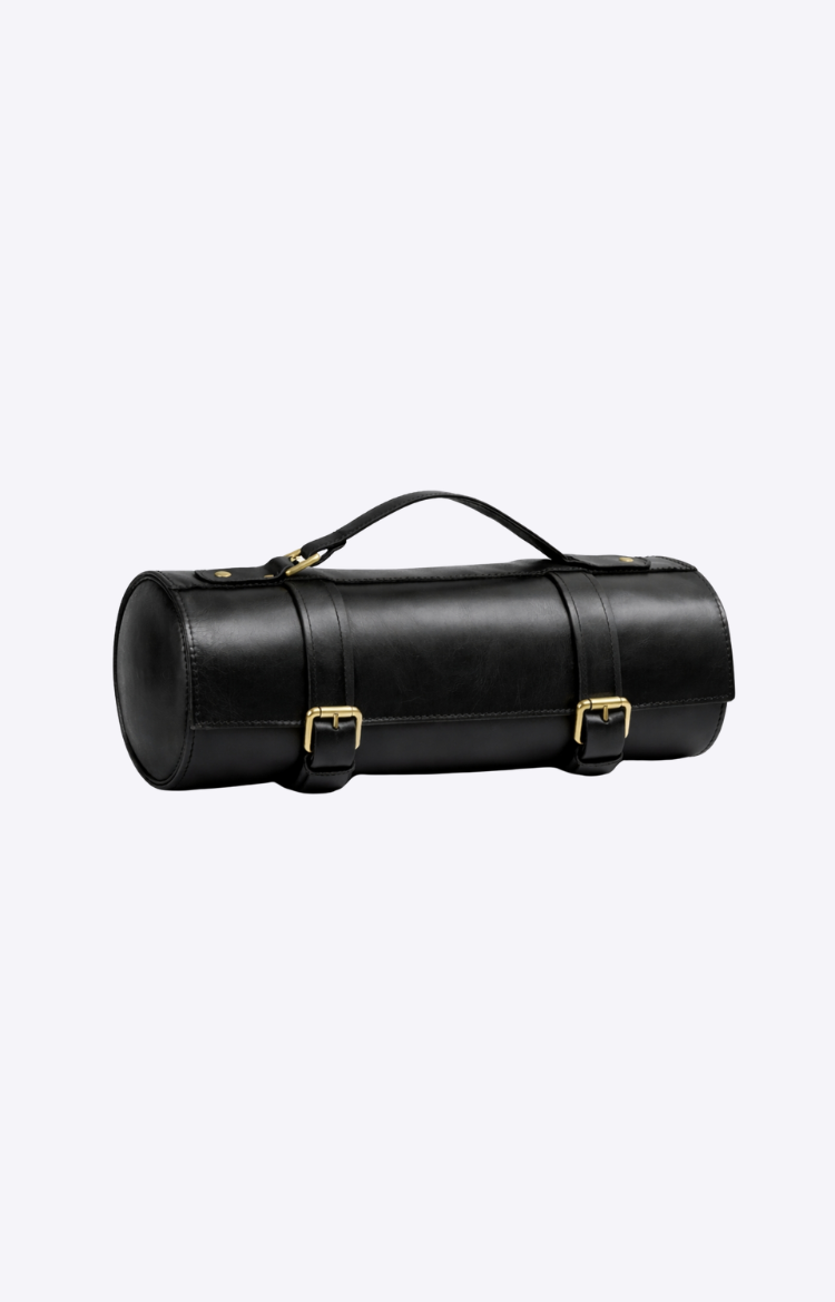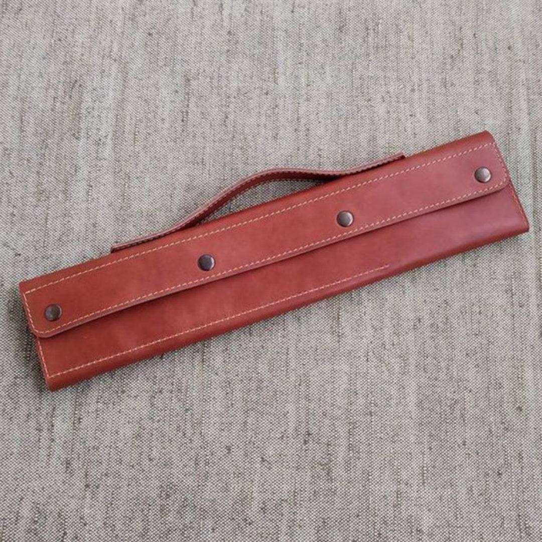 Compact rich leather knife roll with padded interior. Stylish, durable, and ideal for chefs needing safe, portable knife storage.