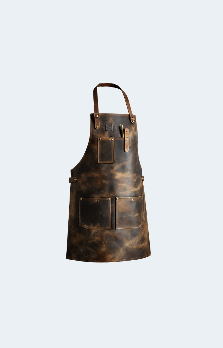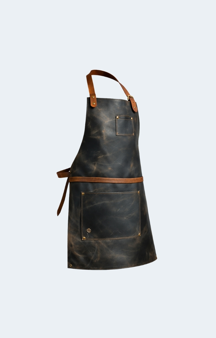 The Front Pockets Yorkshire Full Grain Black Apron is crafted from 100% premium full-grain black leather, offering exceptional durability and a refined professional look. Its rich texture and natural strength reflect true heritage craftsmanship built to age beautifully over time.