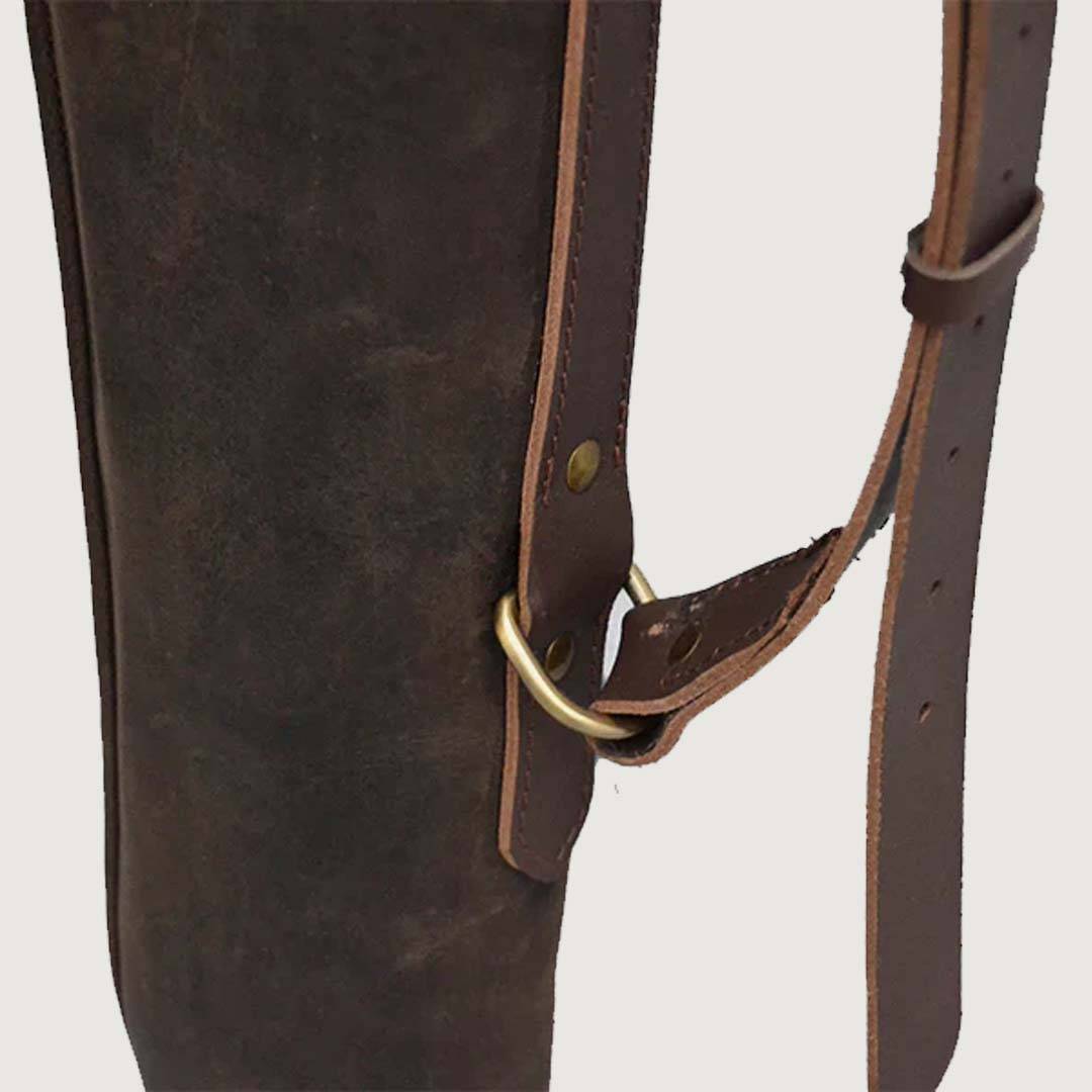 Note: This all-leather shotgun slip case is suitable for 28 to 32 inch barrel shotguns, with an internal length of 51.5 inches. Please confirm your shotgun’s dimensions before purchase.