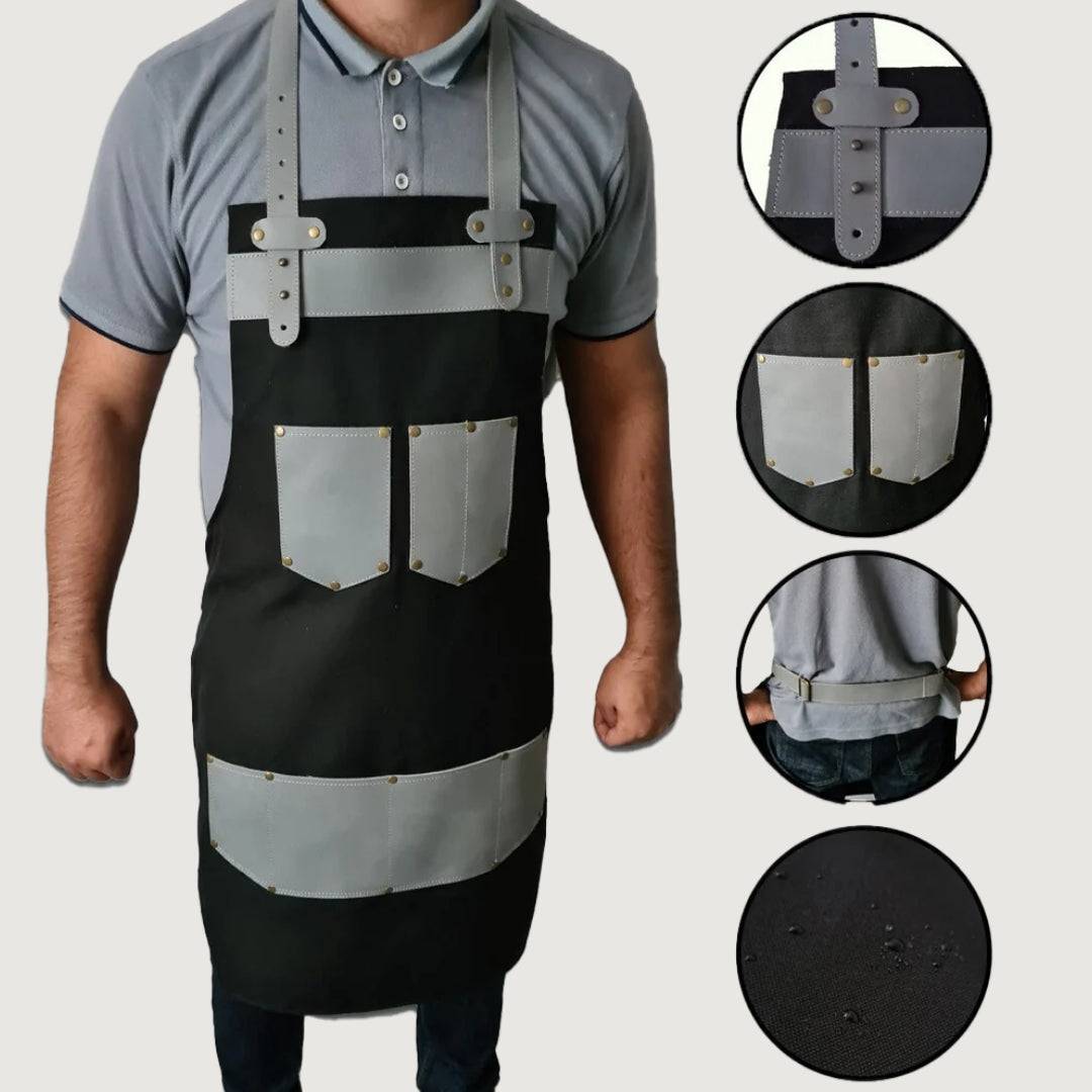 Unleash your inner craftsman with our premium canvas and leather apron. This isn’t just an apron; it’s a statement of rugged quality and unique style. Featuring a durable canvas body with thick, full-grain cowhide leather pockets and straps, it offers superior protection, comfort, and a distinctive look that’s built to impress and last.
