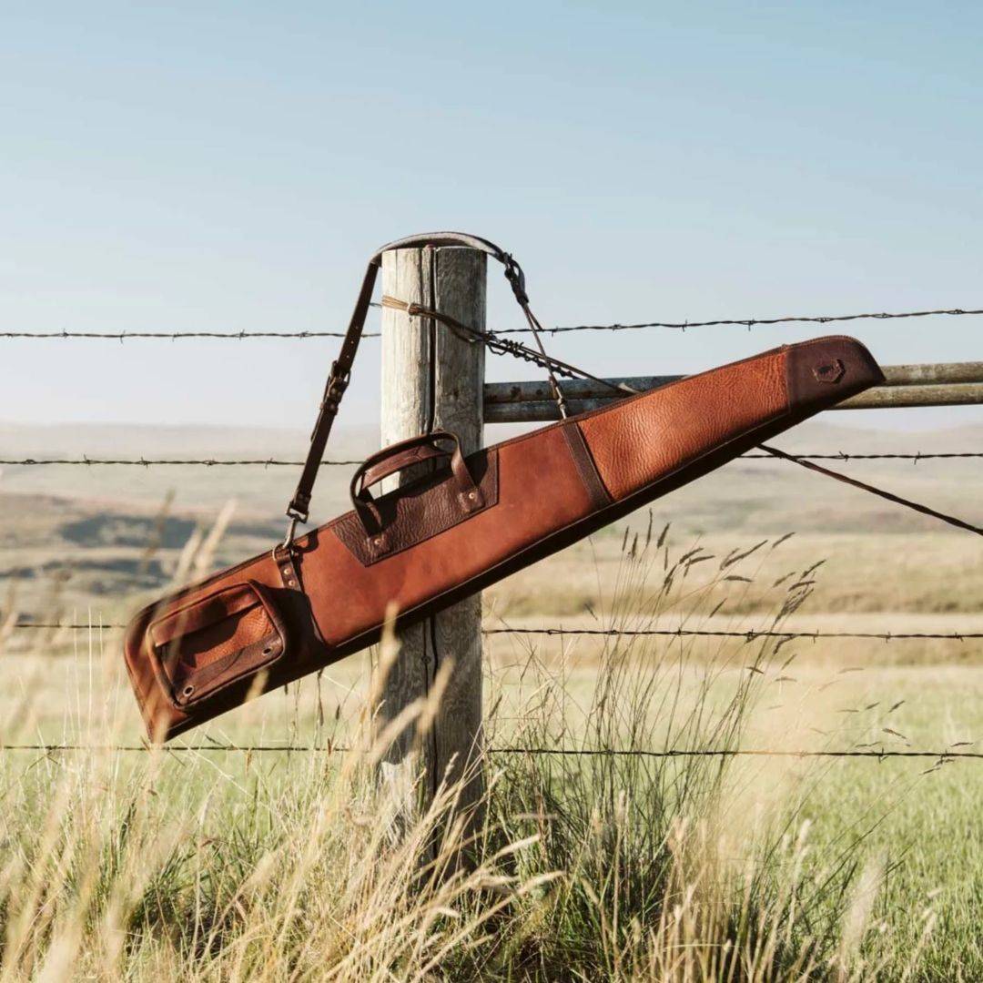 The Two-Toned Thick Leather Rifle Case combines rugged functionality with luxury for the discerning outdoorsman. It is made from vegetable-tanned full-grain leather and features a sherpa-lined interior, copper rivets, antique brass hardware, and an adjustable leather strap. Durable and elegant, it’s the ultimate statement piece for those who demand quality and style.